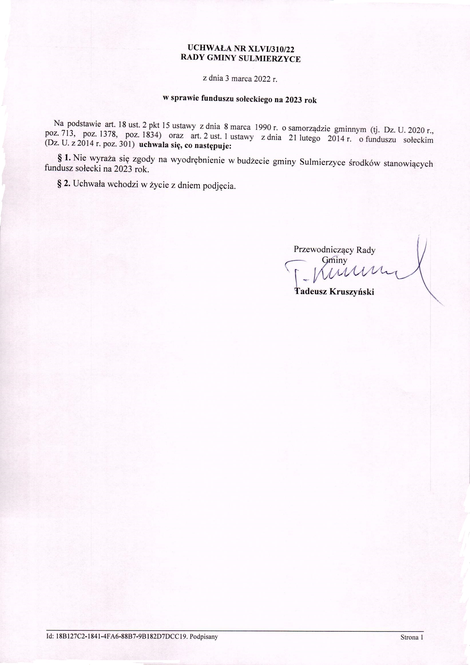 2022-03-03 przez Tadeusz Kruszyński - Przewodniczący Rady Gminy Sulmierzyce