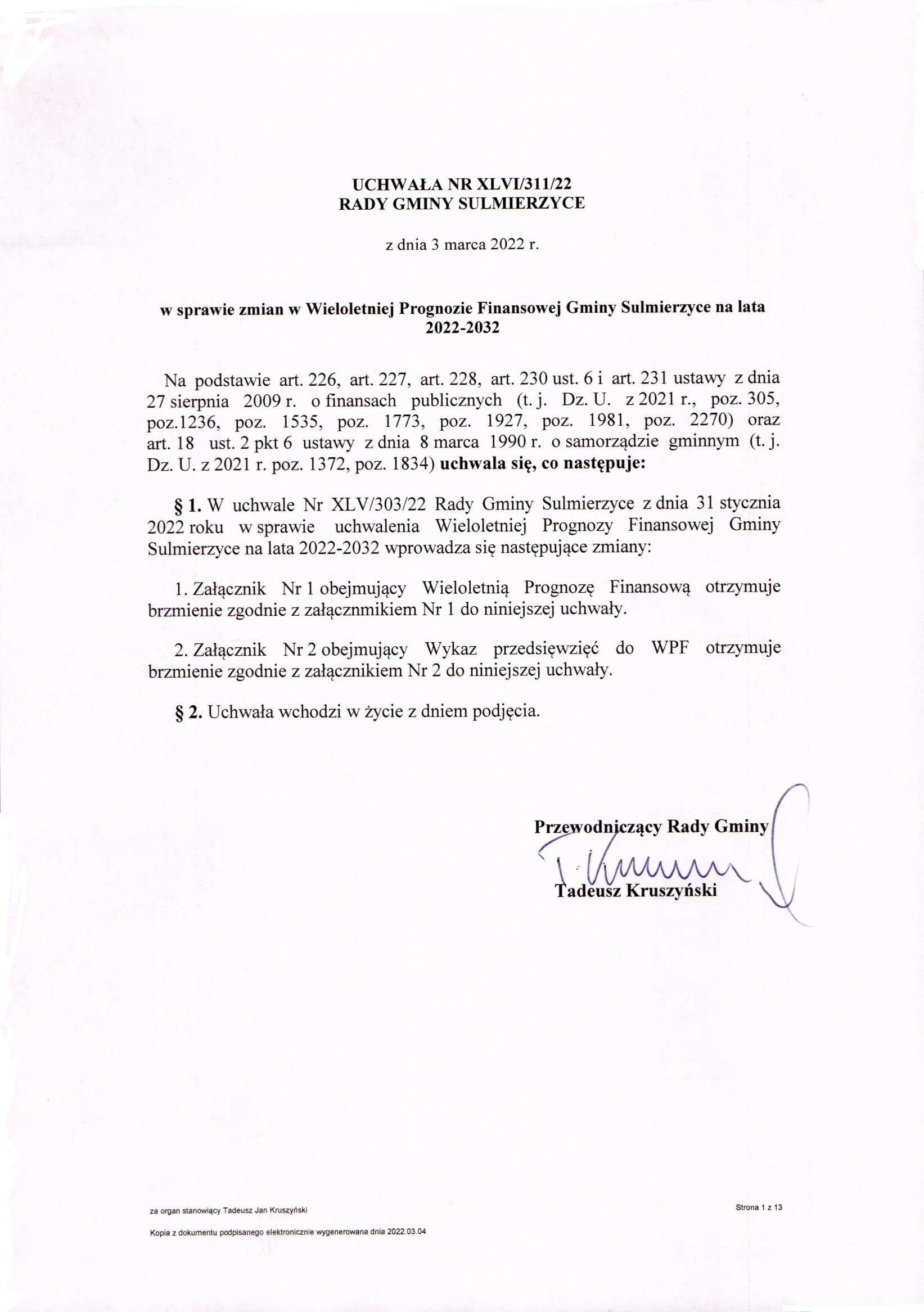 2022-03-03 przez Tadeusz Kruszyński - Przewodniczący Rady Gminy Sulmierzyce
