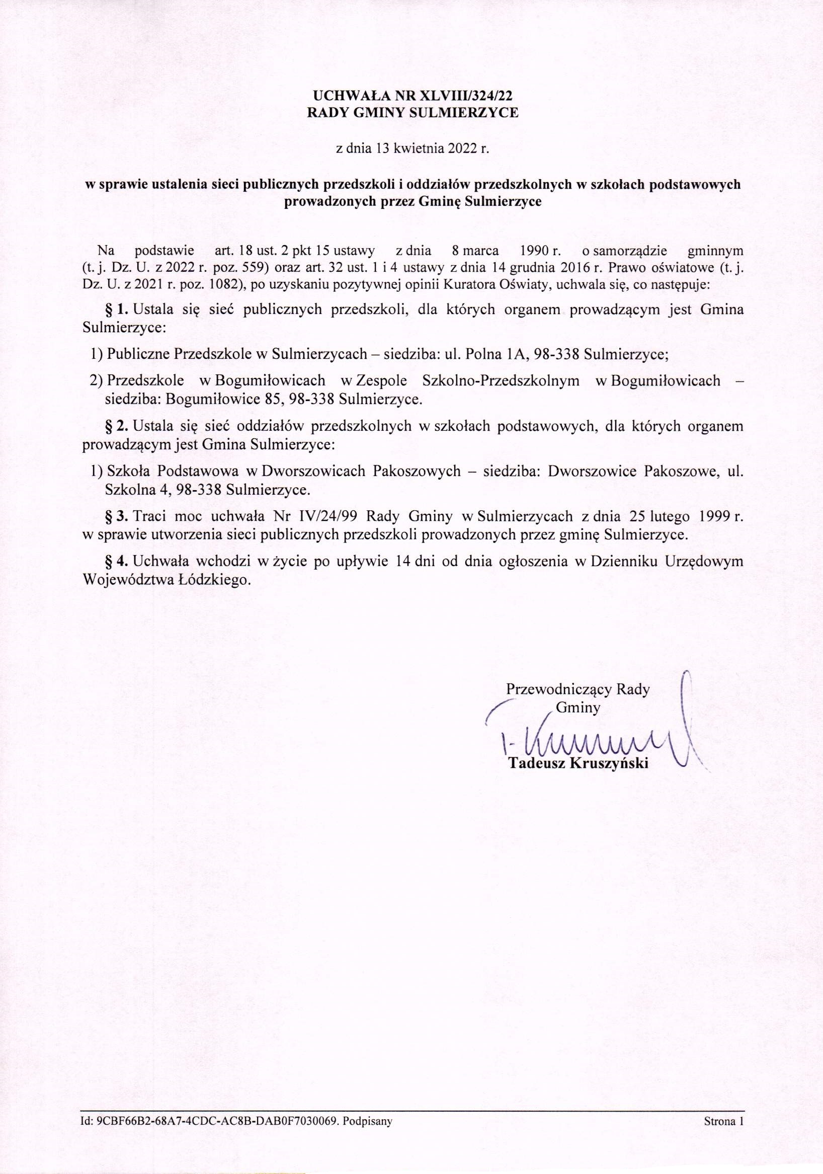 2022-04-13 przez Tadeusz Kruszyński - Przewodniczący Rady Gminy Sulmierzyce