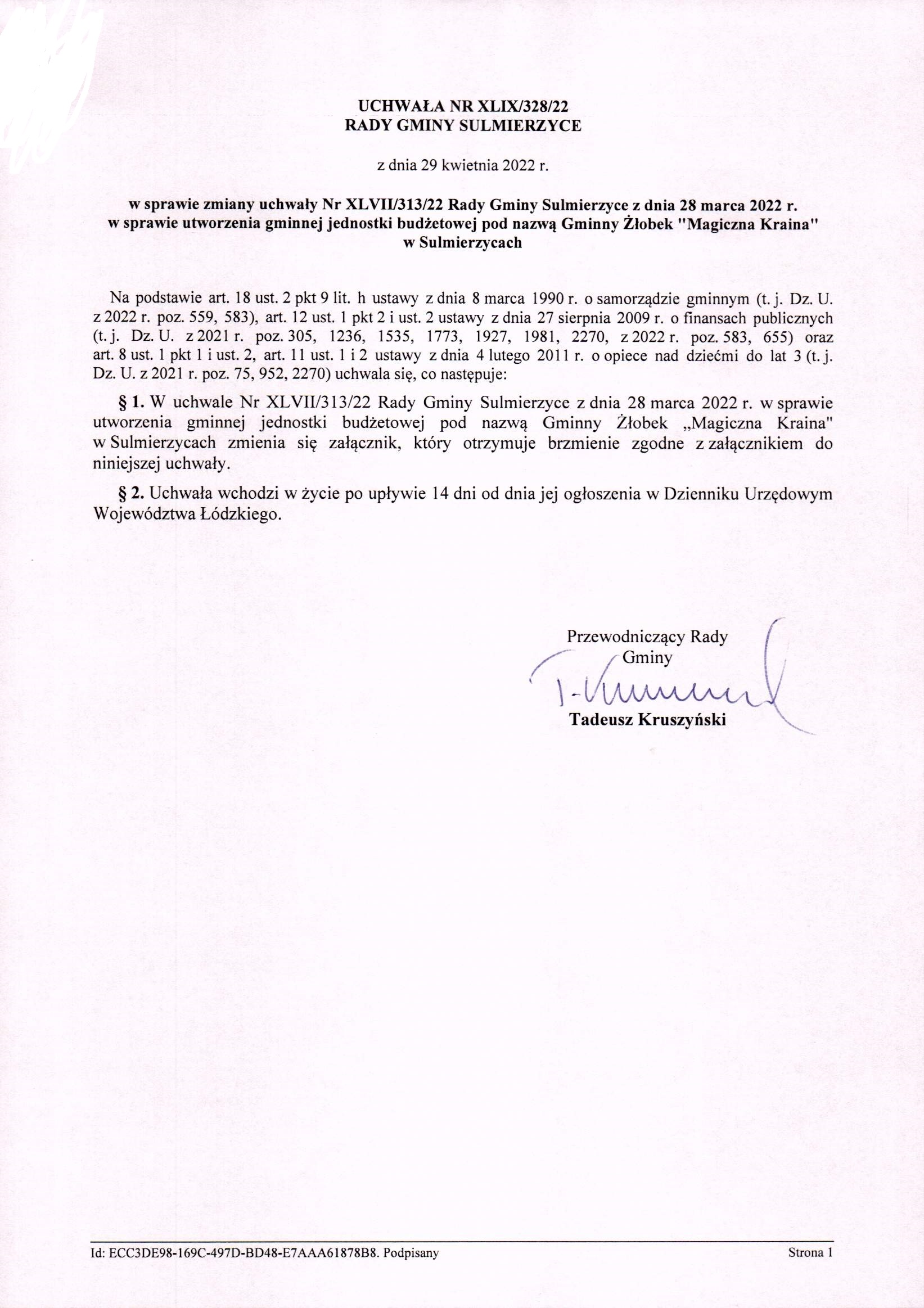 2022-04-29 przez Tadeusz Kruszyński - Przewodniczący Rady Gminy Sulmierzyce