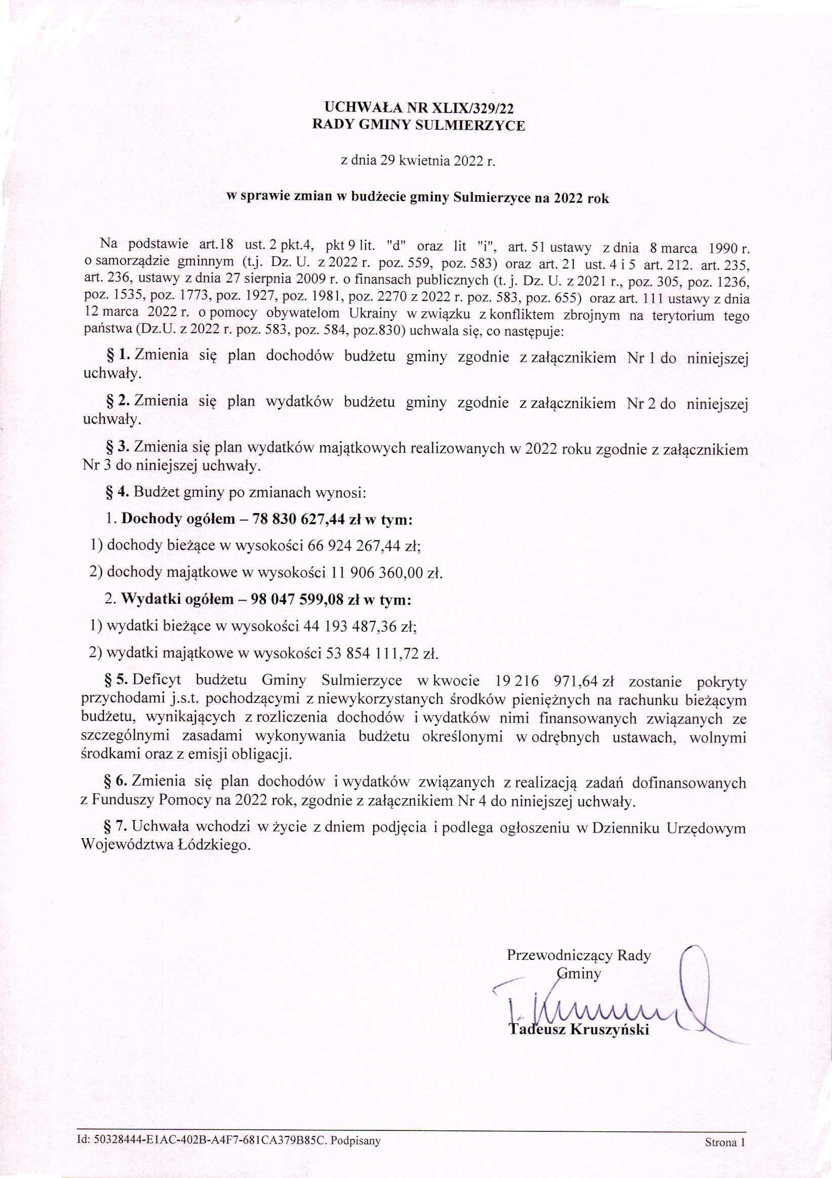 2022-04-29 przez Tadeusz Kruszyński - Przewodniczący Rady Gminy Sulmierzyce