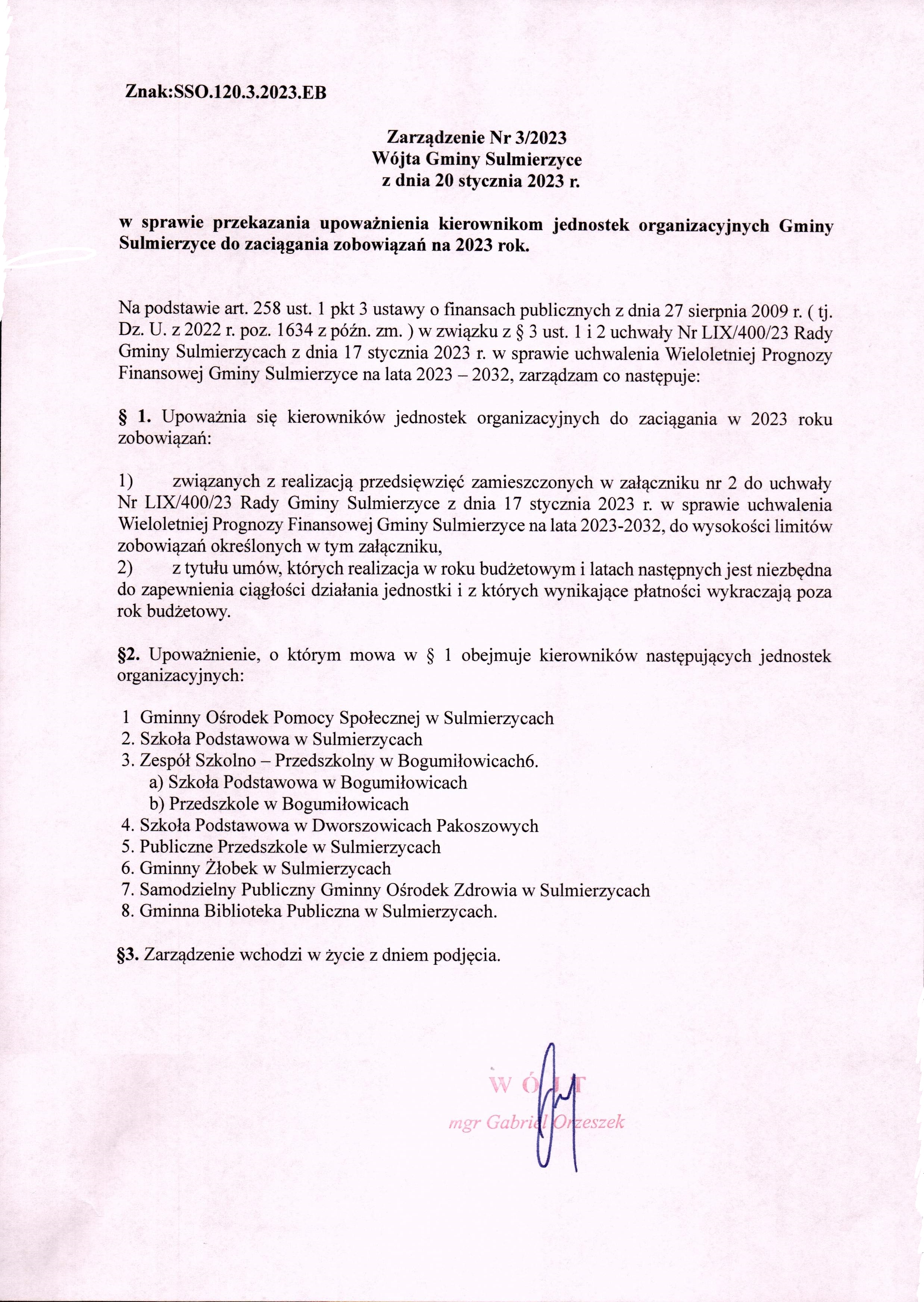 2023-01-20 przez Skarbnik Gminy Ewa Bęczkowska, zatwierdził: Wójt Gminy Gabriel Orzeszek