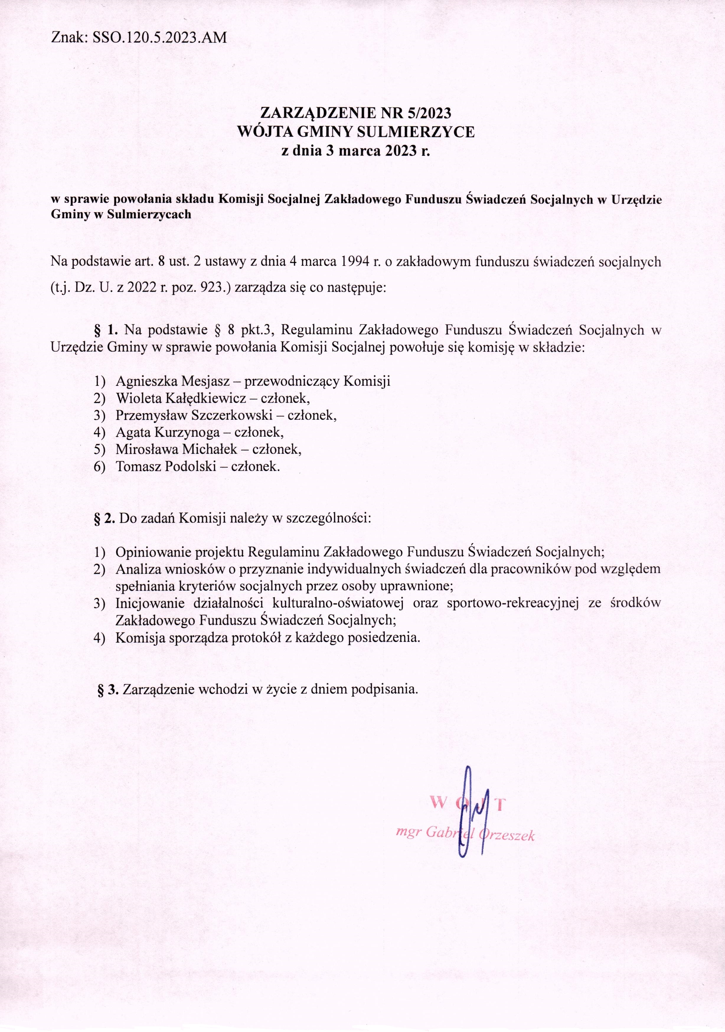 2023-03-03 przez Agnieszka Mesjasz, zatwierdził: Wójt Gminy Gabriel Orzeszek