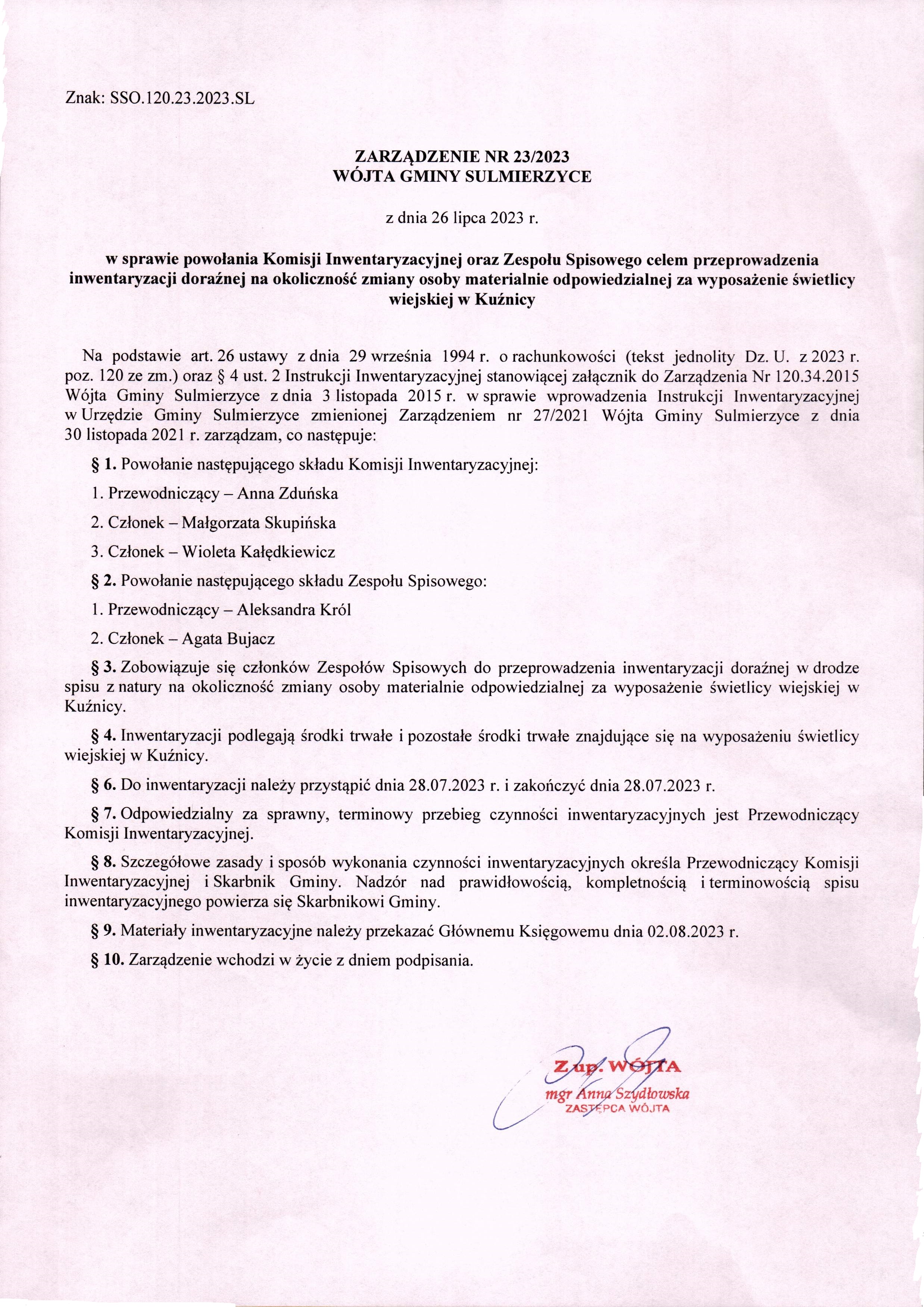 2023-07-26 przez Sylwia Lorencka, zatwierdził: Zastępca Wójta Gminy Anna Szydłowska