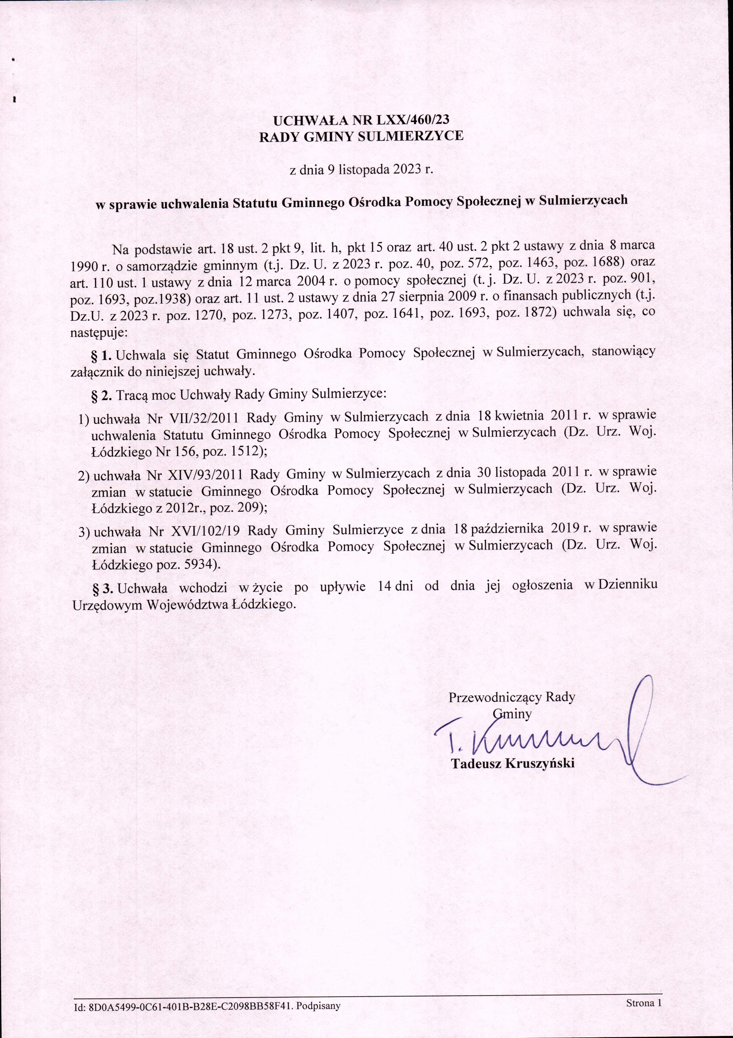 2023-11-09 przez Tadeusz Kruszyński - Przewodniczący Rady Gminy Sulmierzyce