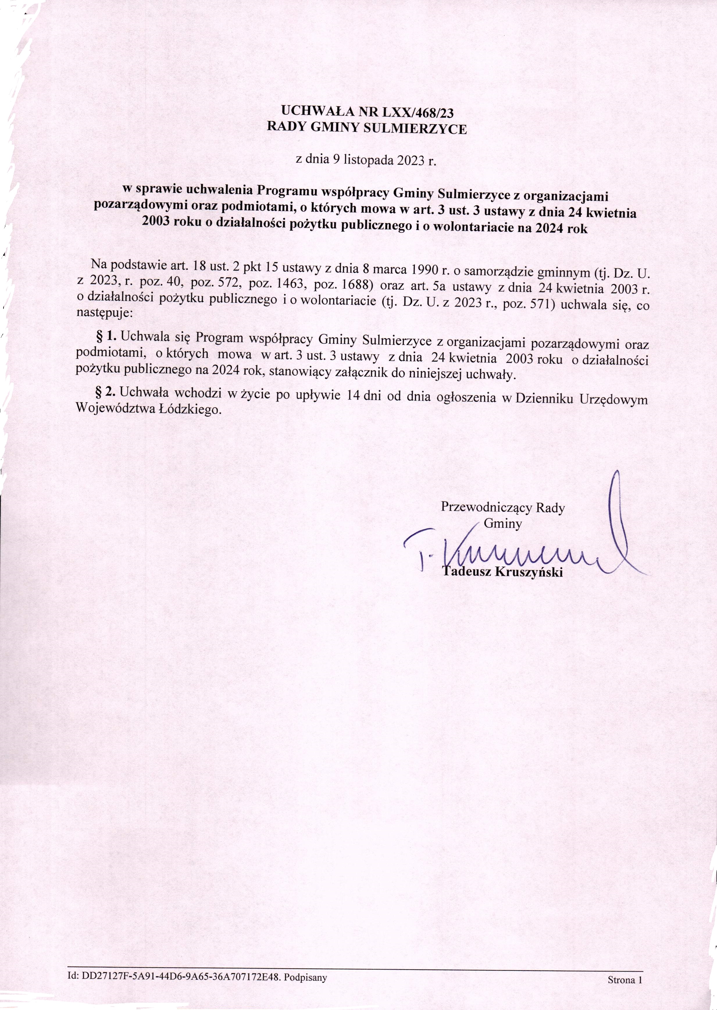 2023-11-09 przez Tadeusz Kruszyński - Przewodniczący Rady Gminy Sulmierzyce
