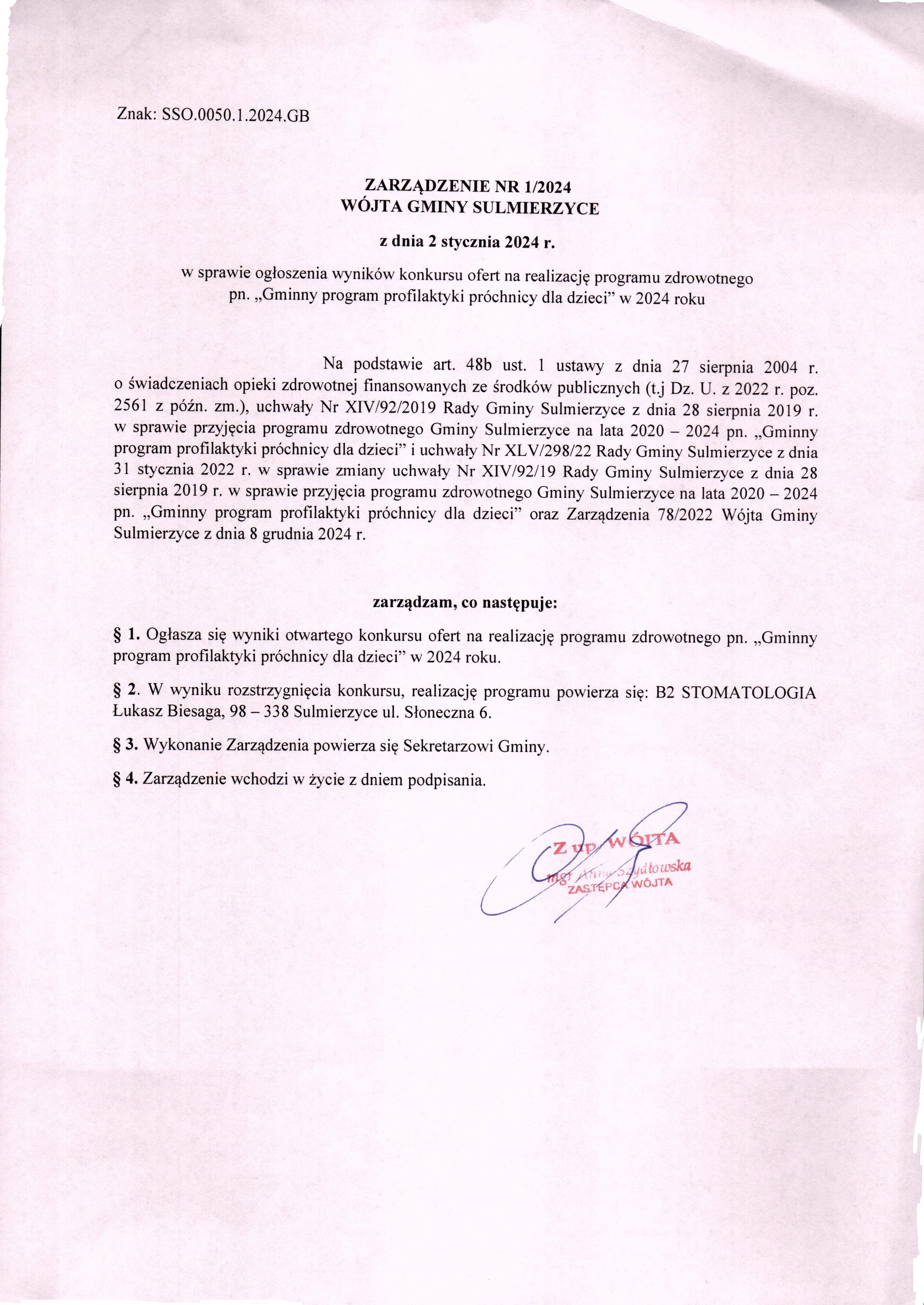 2024-01-02 przez Gabriela Brzeszczyńska, zatwierdził: Zastępca Wójta Gminy Anna Szydłowska