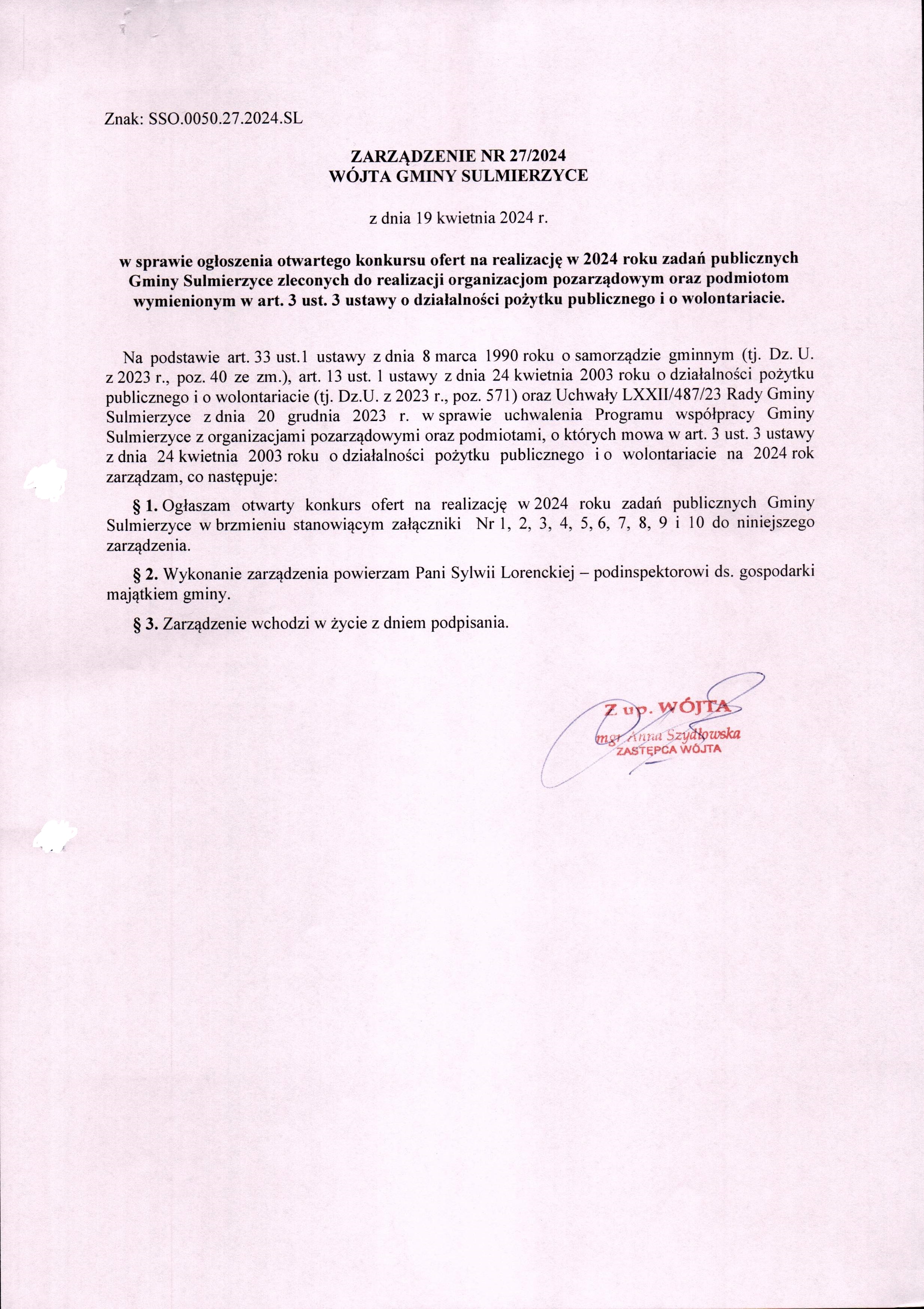 2024-04-19 przez Sylwia Lorencka, zatwierdził: Zastępca Wójta Gminy Anna Szydłowska