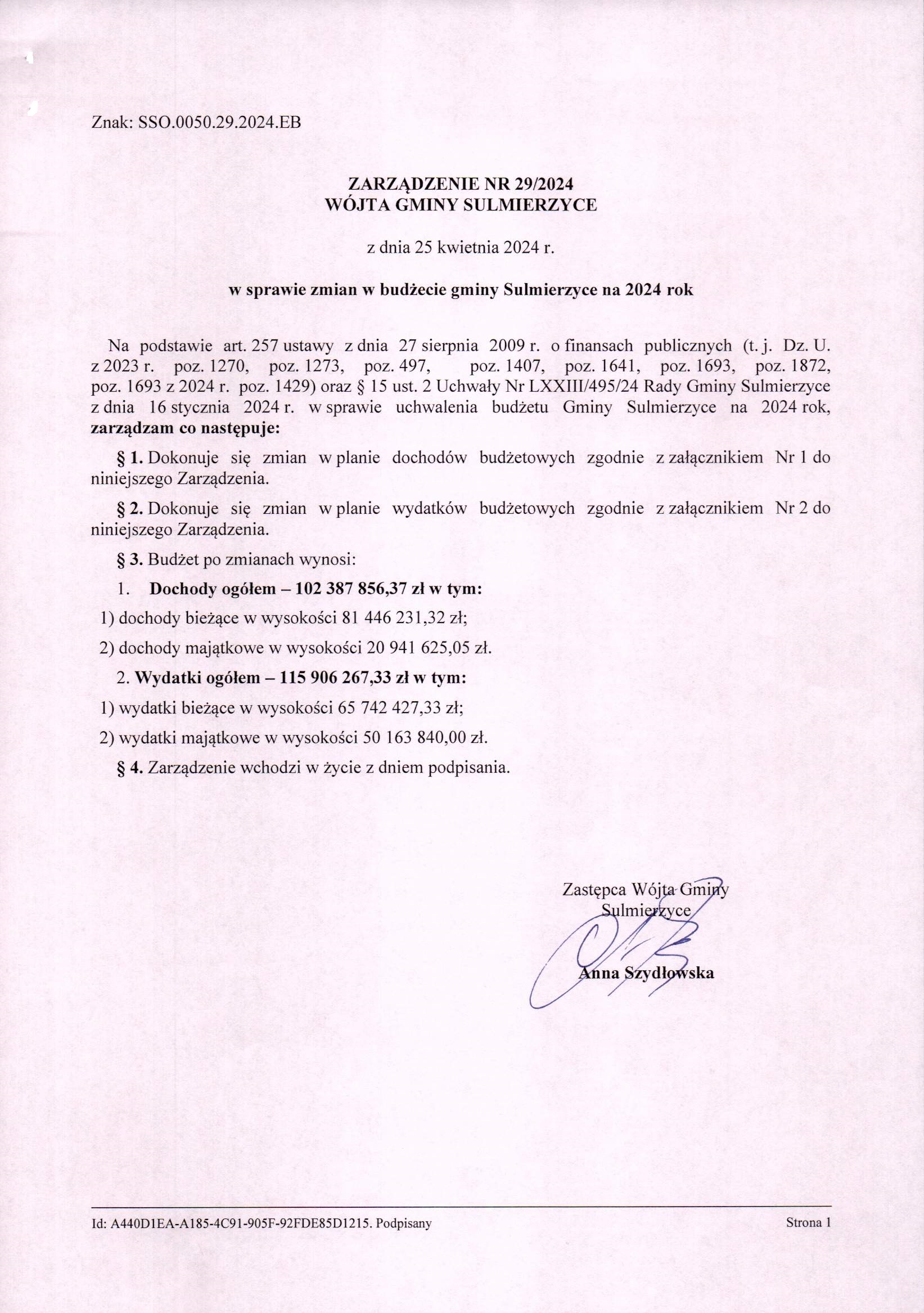 2024-04-29 przez Skarbnik Gminy Ewa Bęczkowska, zatwierdził: Wójt Gminy Gabriel Orzeszek