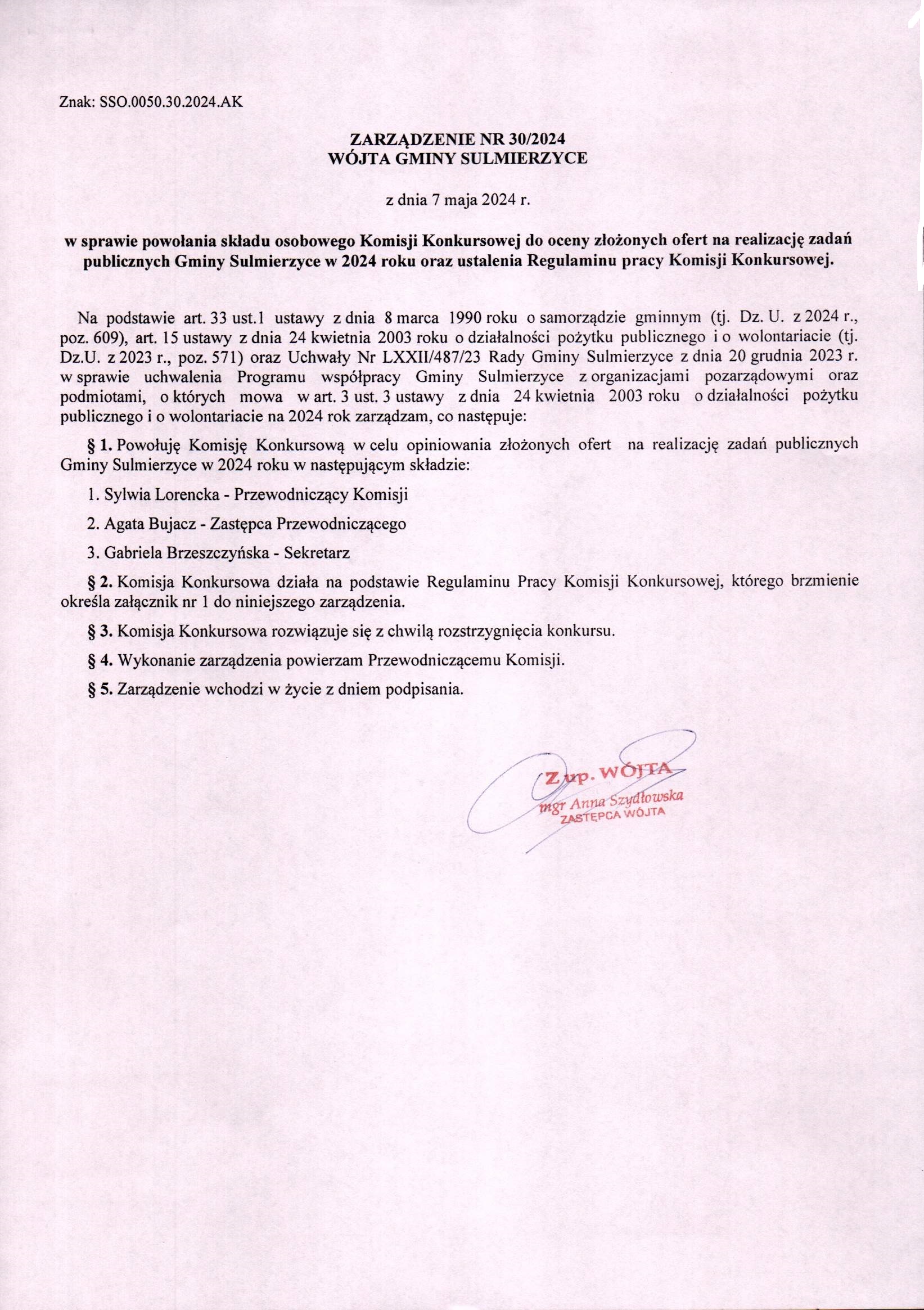 2024-05-07 przez Aleksandra Król, zatwierdził: Zastępca Wójta Gminy Anna Szydłowska