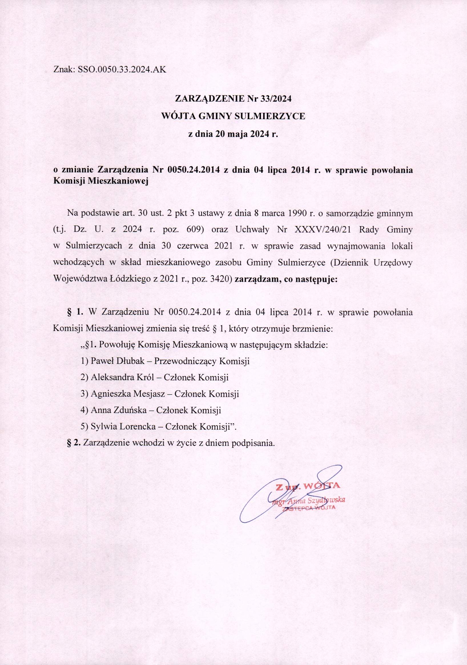 2024-05-20 przez Aleksandra Król, zatwierdził: Zastępca Wójta Gminy Anna Szydłowska