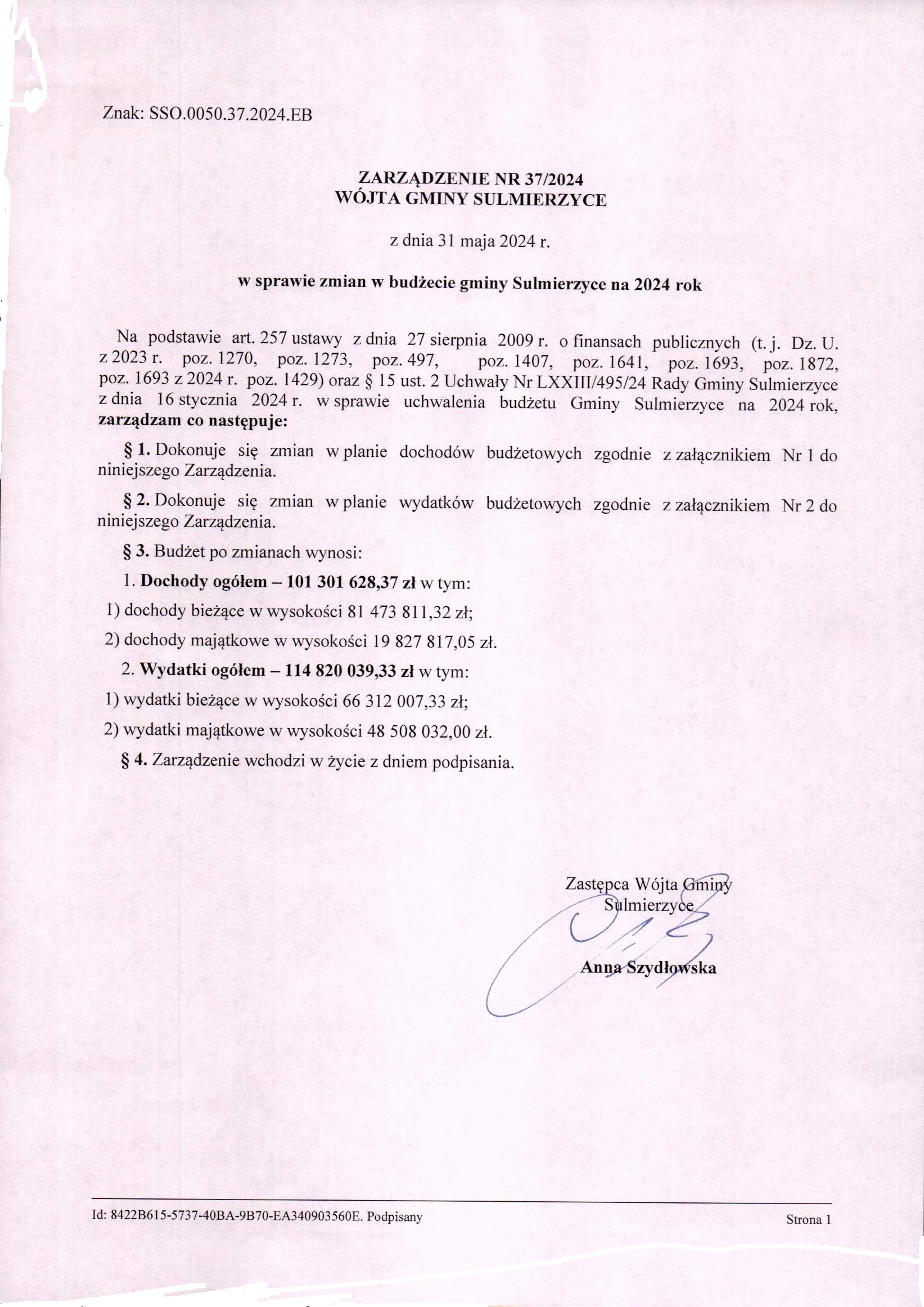 2024-05-31 przez Skarbnik Gminy Ewa Bęczkowska, zatwierdził: Zastepca Wójta Gminy Anna Szydłowska