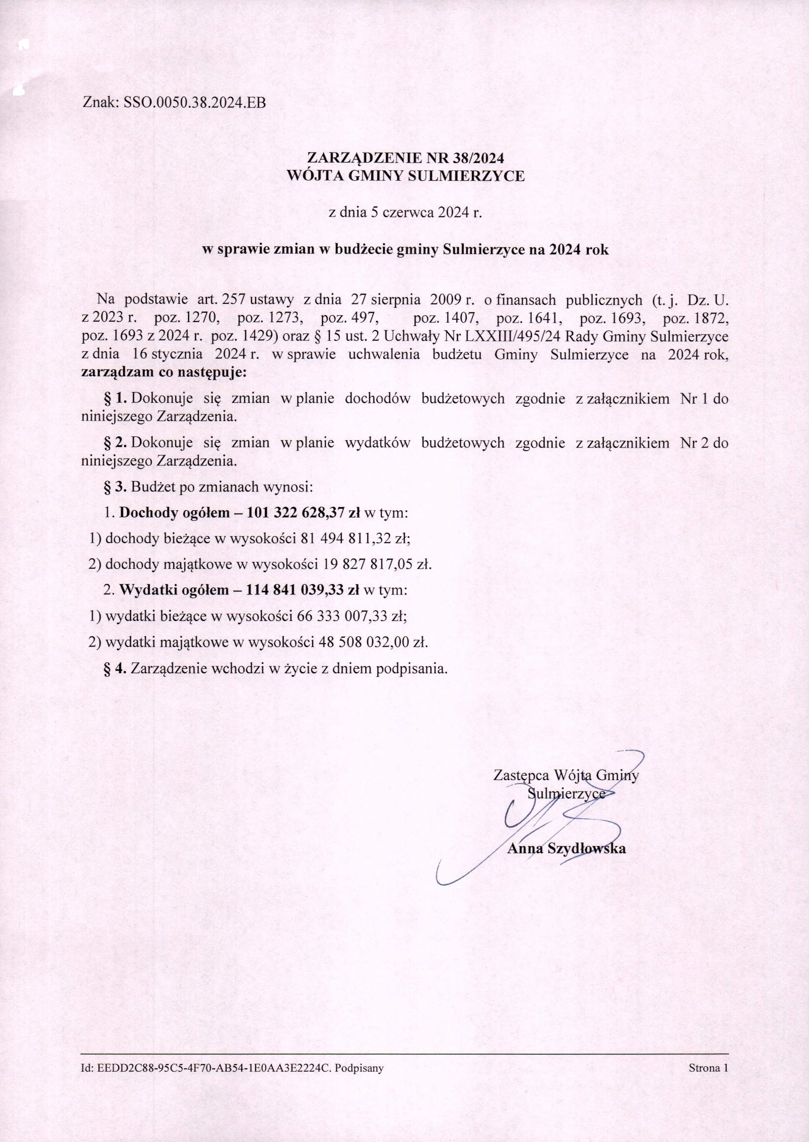 2024-06-05 przez Skarbnik Gminy Ewa Bęczkowska, zatwierdził: Zastępca Wójta Gminy Anna Szydłowska