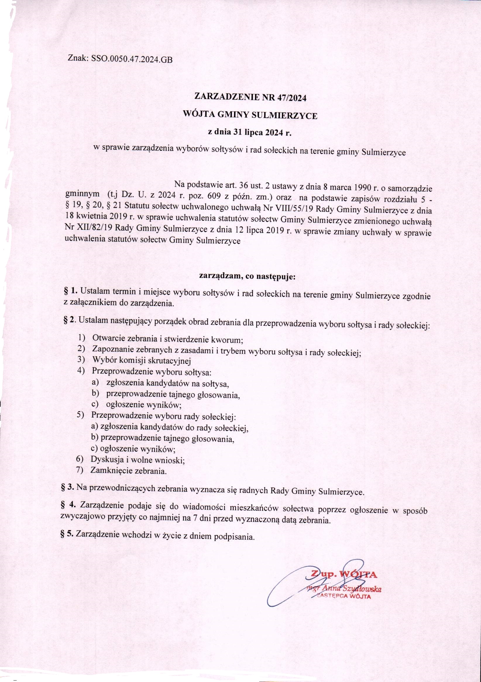 2024-07-31 przez Gabriela Brzeszczyńska, zatwierdził: Zastępca Wójta Gminy Anna Szydłowska