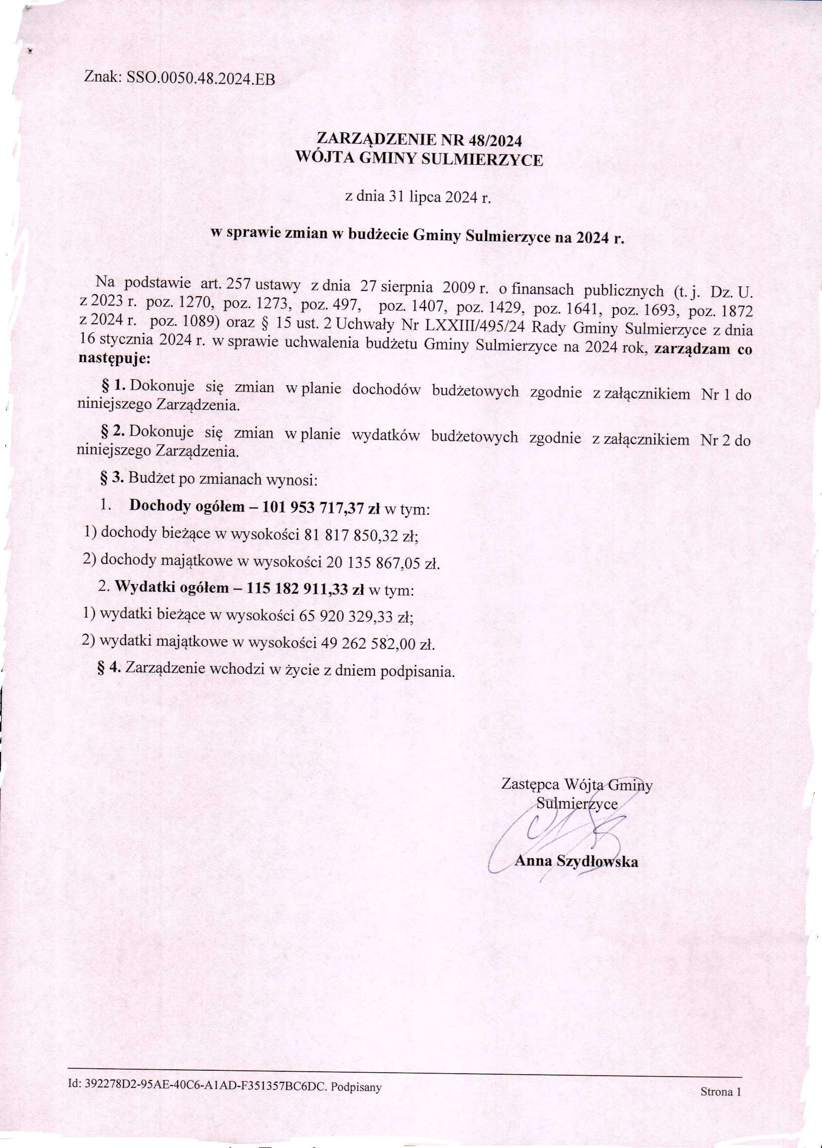 2024-07-31 przez Skarbnik Gminy Ewa Bęczkowska, zatwierdził: Zastępca Wójta Gminy Anna Szydłowska