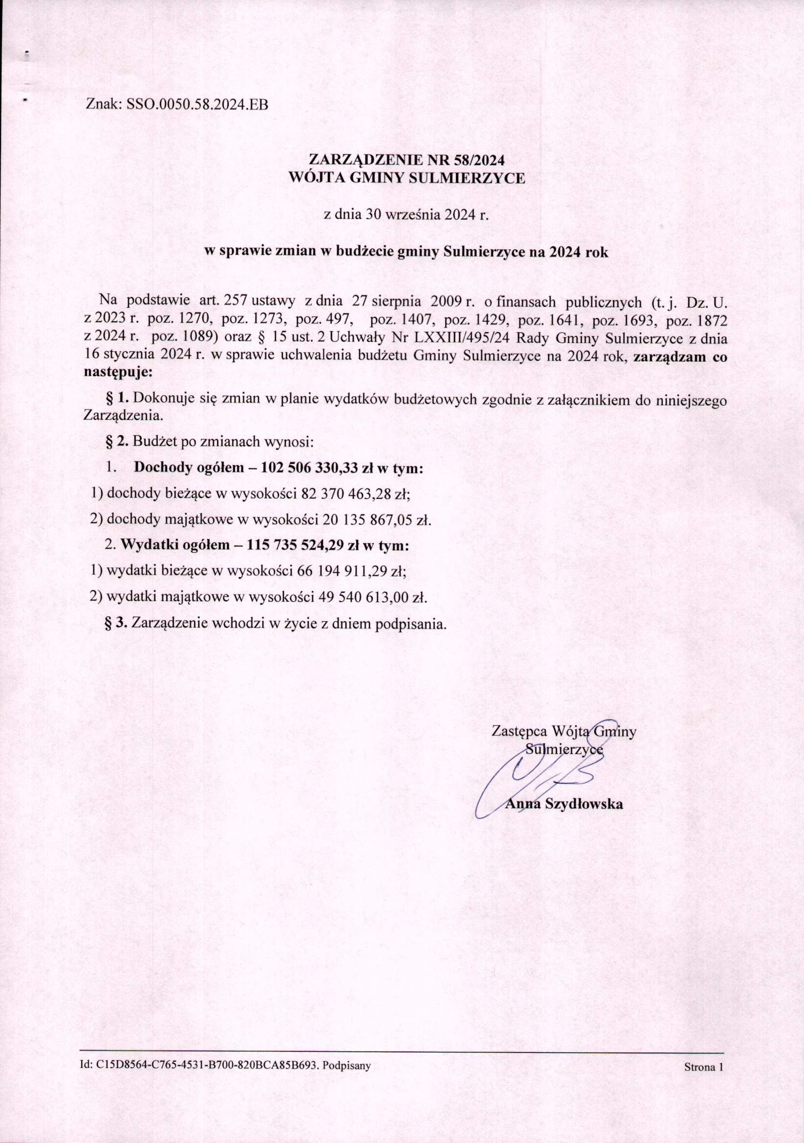 2024-09-30 przez Skarbnik Gminy Ewa Bęczkowska, zatwierdził: Zastępca Wójta Gminy Anna Szydłowska