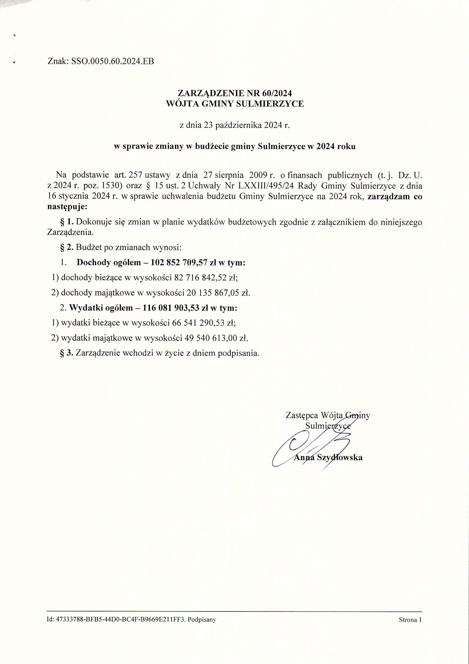 2024-11-08 przez Skarbnik Gminy Ewa Bęczkowska, zatwierdził: Zastępca Wójta Gminy Anna Szydłowska