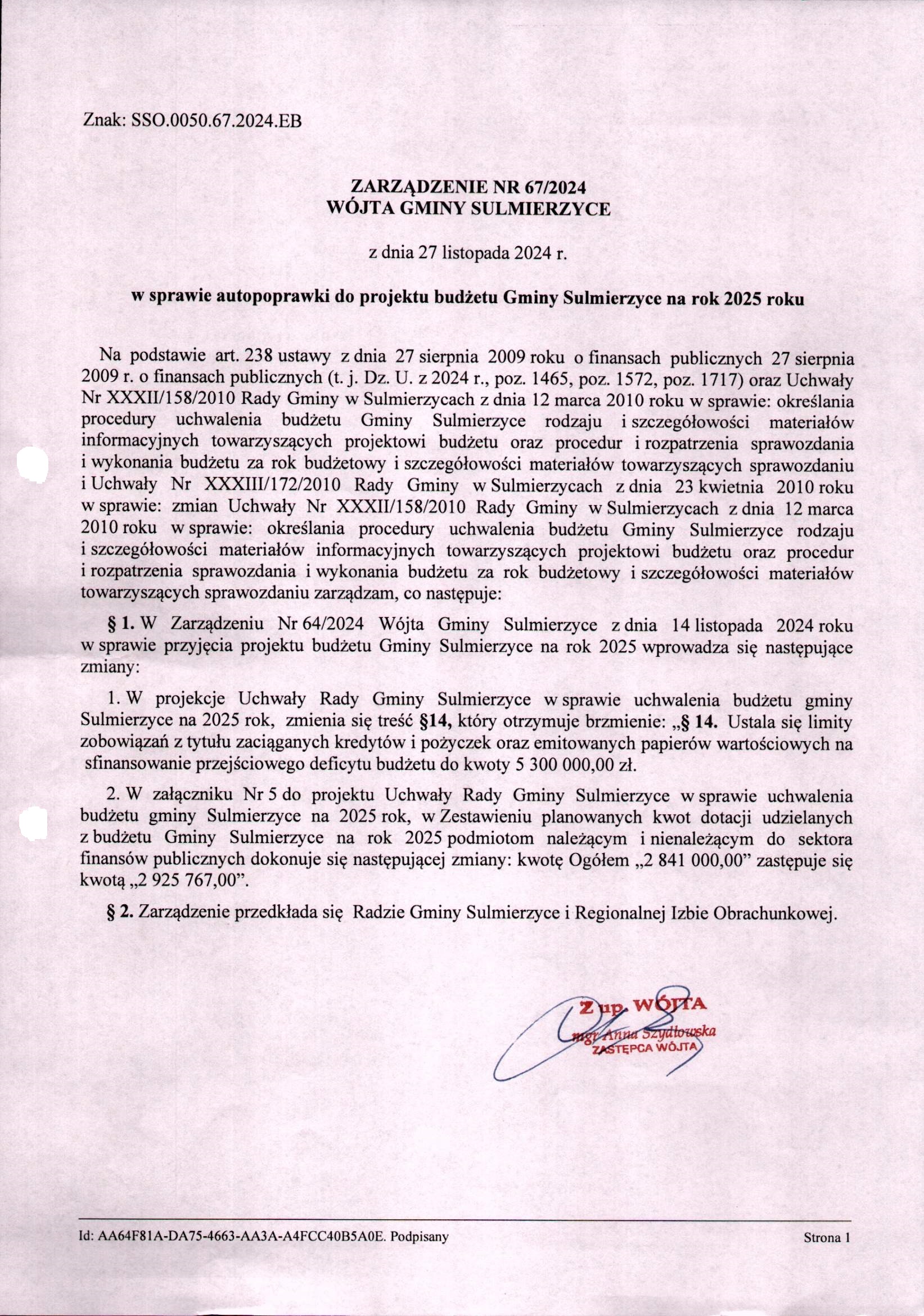 2024-11-27 przez Skarbnik Gminy Ewa Bęczkowska, zatwierdził: Zastępca Wójta Gminy Anna Szydłowska