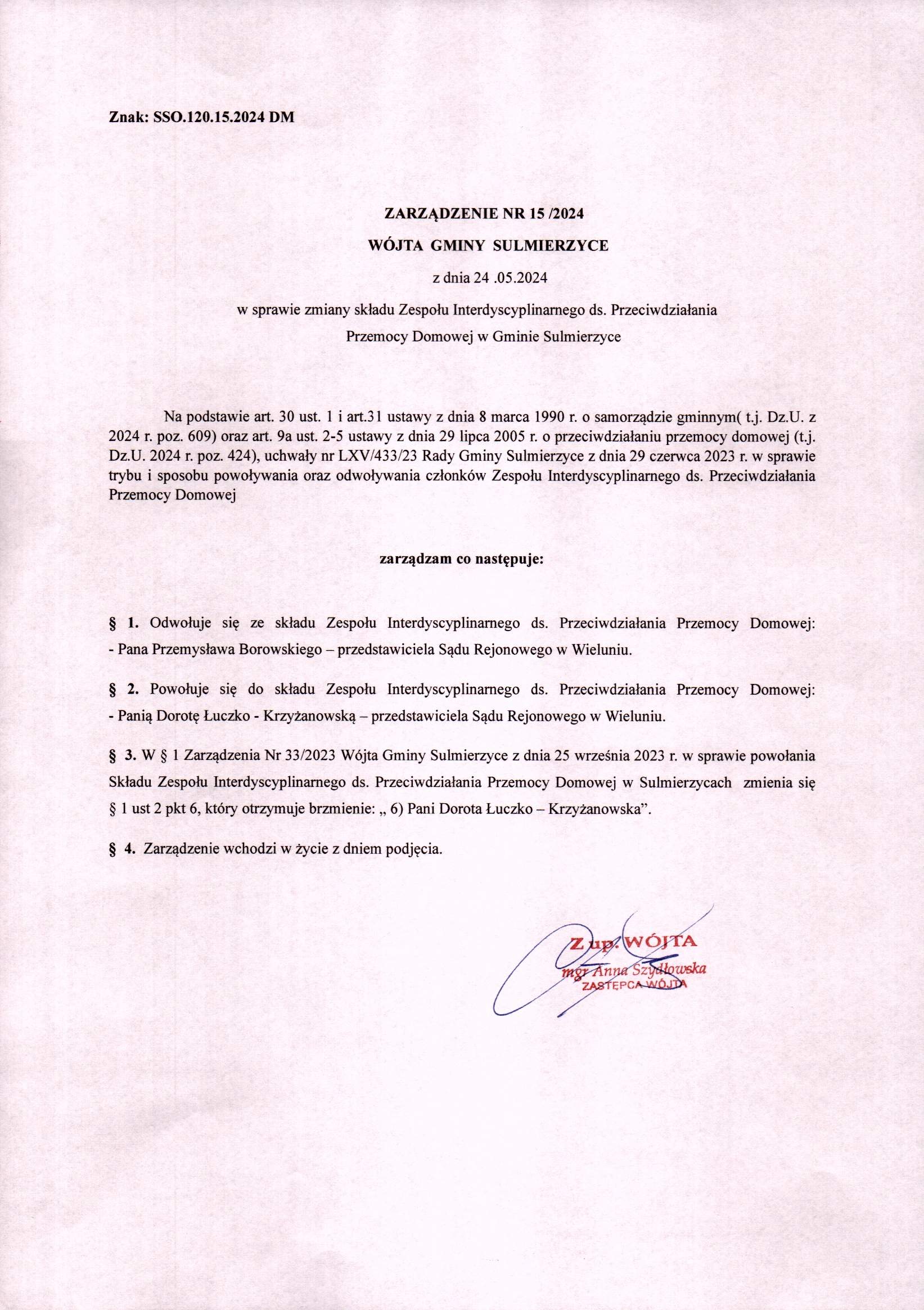 2024-05-24 przez Damian Makos, zatwierdził: Zastępca Wójta Gminy Anna Szydłowska