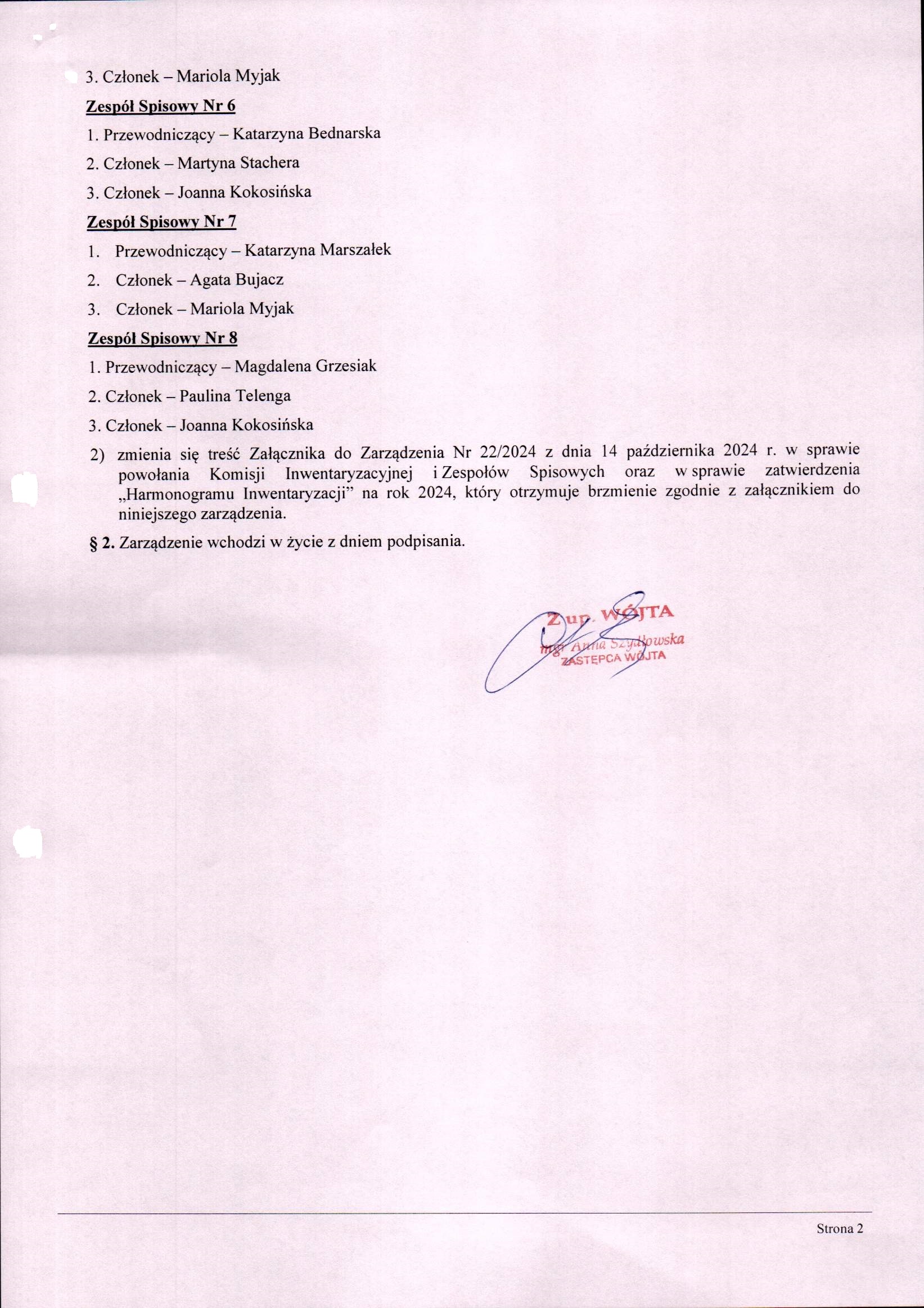 2024-11-08 przez Wioletta Szewczyk, zatwierdził: Zastępca Wójta Gminy Anna Szydłowska