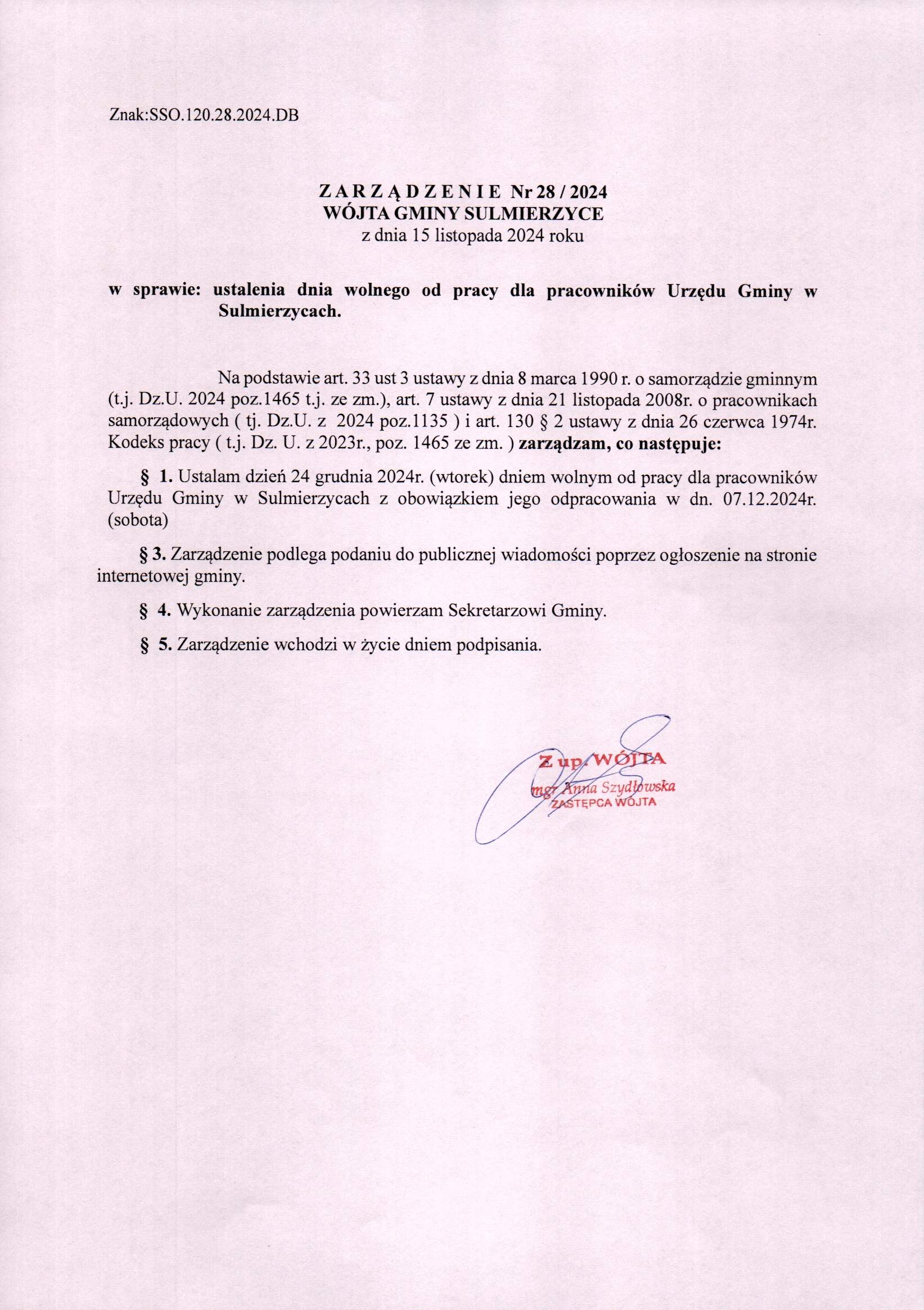 2024-11-15 przez Dorota Błaszczyk, zatwierdził: Zastępca Wójta Gminy Anna Szydłowska