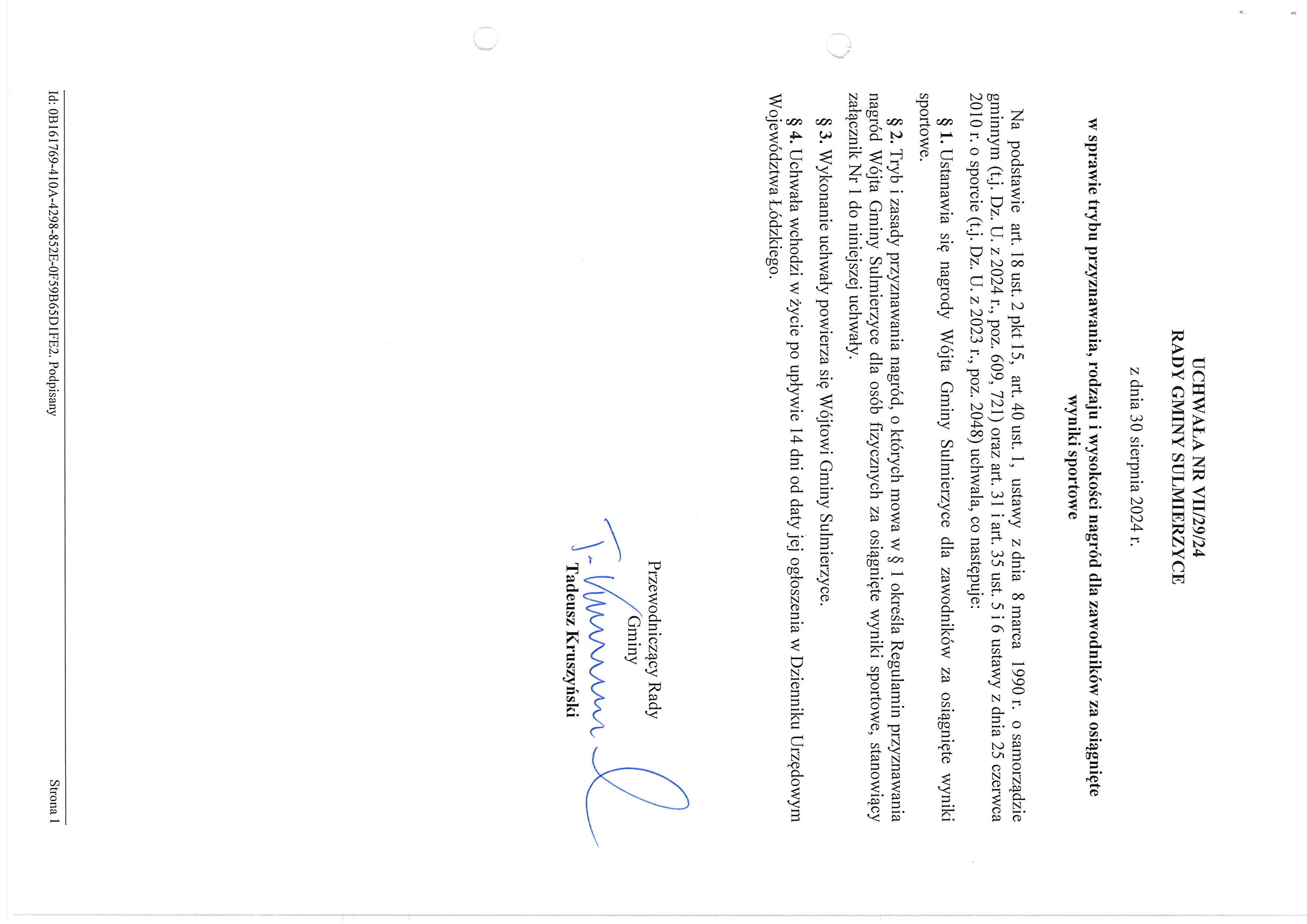 2024-08-30 przez Tadeusz Kruszyński - Przewodniczący Rady Gminy Sulmierzyce
