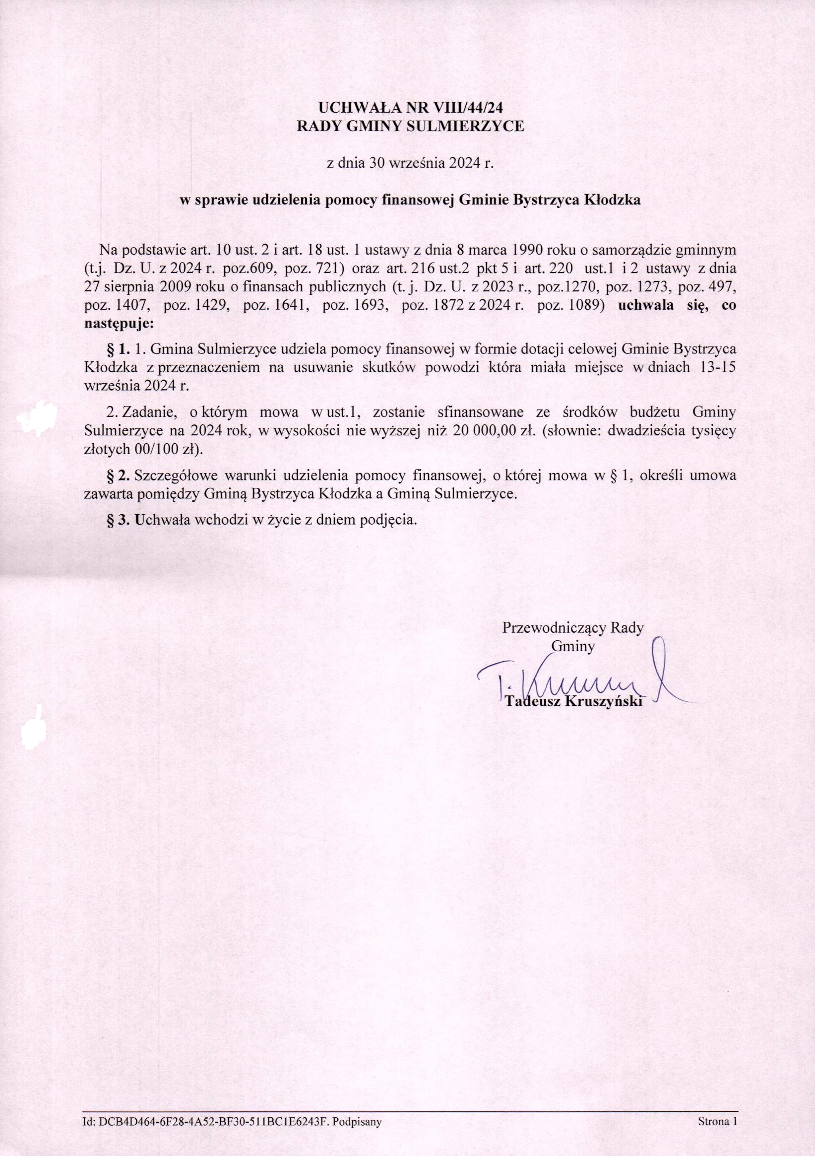 2024-09-30 przez Tadeusz Kruszyński - Przewodniczący Rady Gminy Sulmierzyce