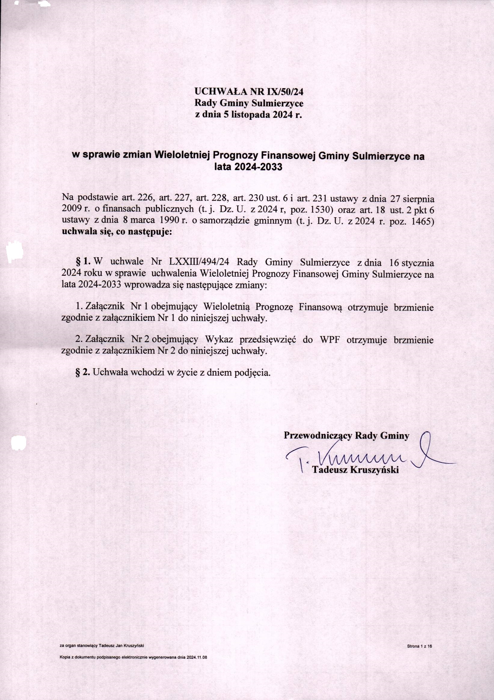 2024-11-05 przez Tadeusz Kruszyński - Przewodniczący Rady Gminy Sulmierzyce