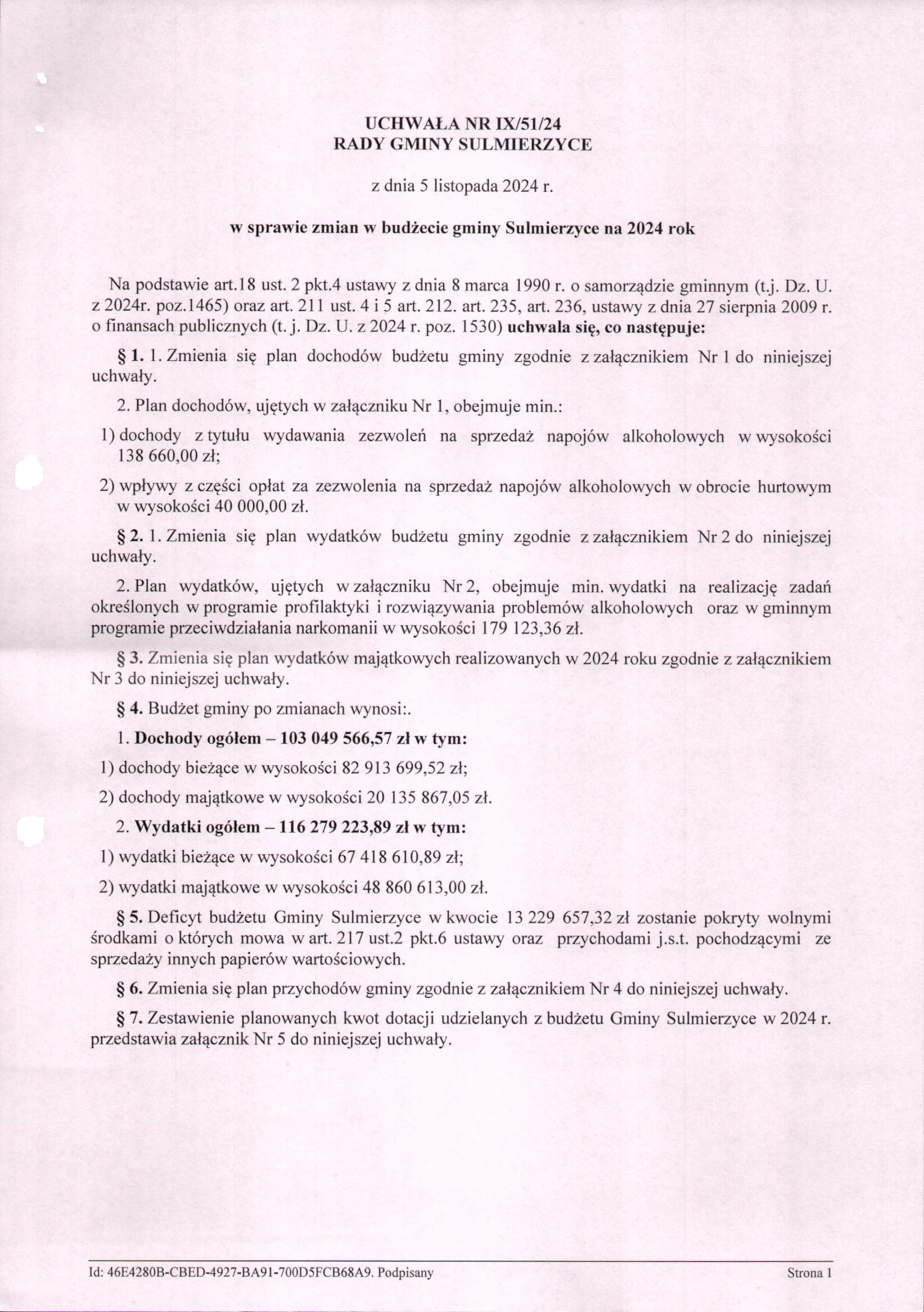 2024-11-05 przez Tadeusz Kruszyński - Przewodniczący Rady Gminy Sulmierzyce