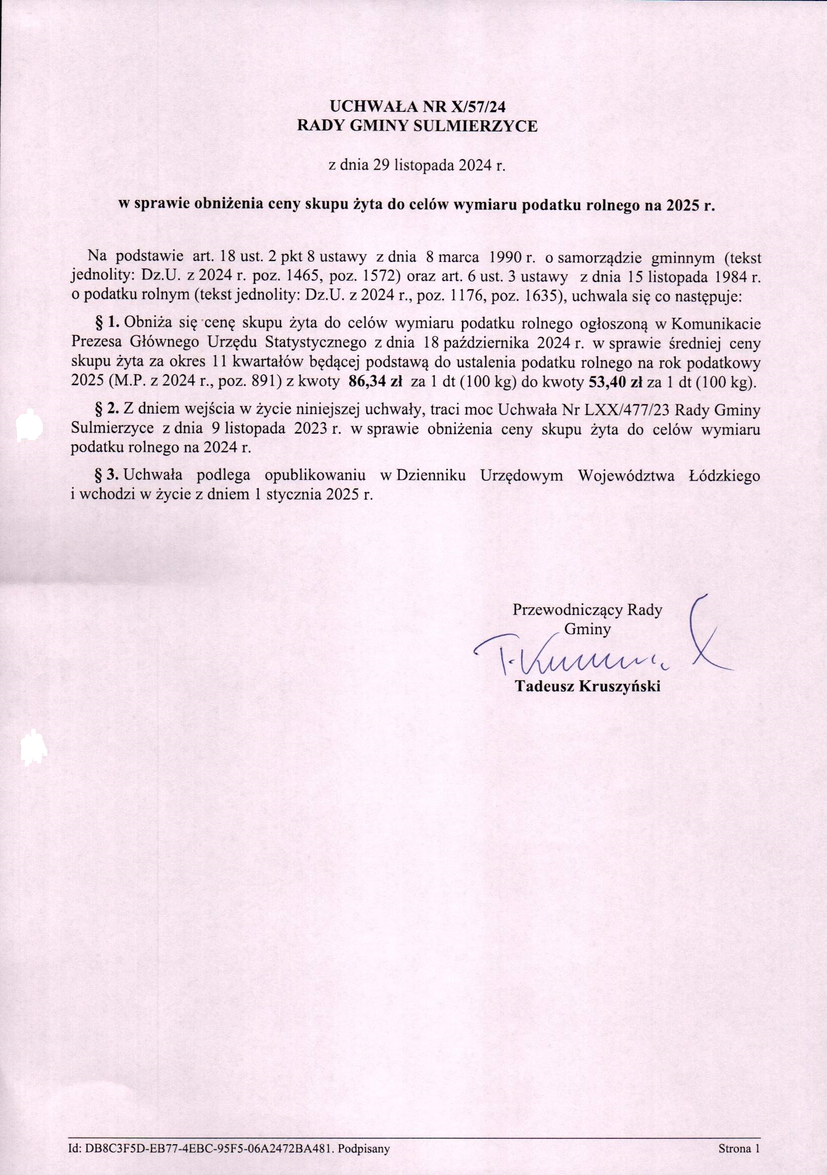 2024-11-29 przez Tadeusz Kruszyński - Przewodniczący Rady Gminy Sulmierzyce