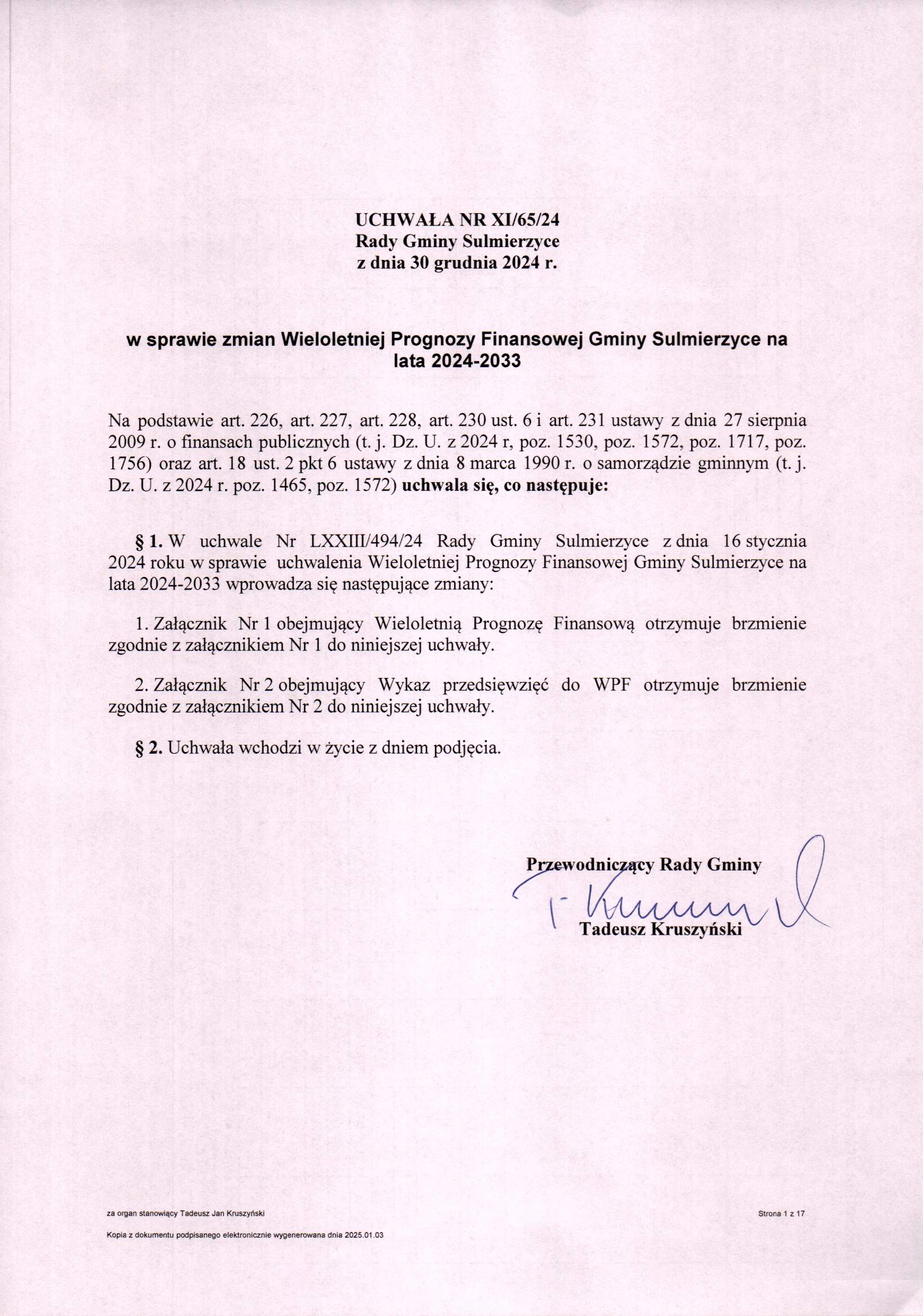 2024-12-30 przez Tadeusz Kruszyński - Przewodniczący Rady Gminy Sulmierzyce