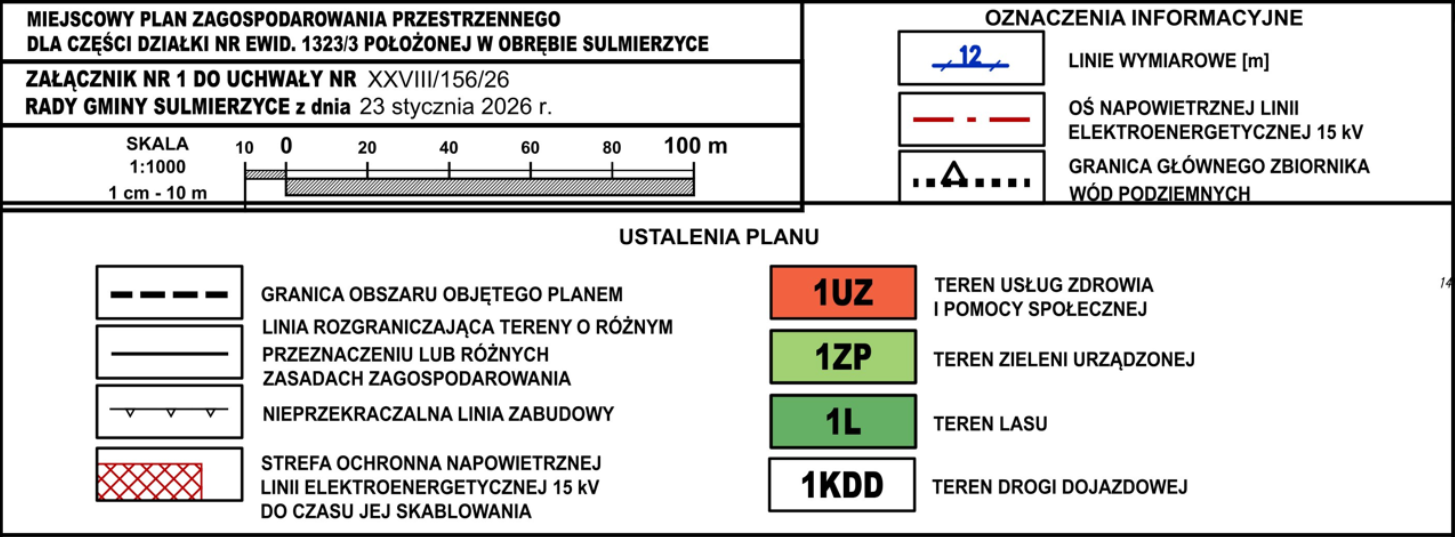 Uchwała Nr XXVIII/156/26 z dnia 23.01.2026 r. w sprawie uchwalenia miejscowego planu zagospodarowania przestrzennego dla części działki nr ewid. 1323/3 położonej w obrębie Sulmierzyce